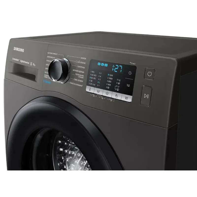 Xüsusiyyətləri Brend: Samsung İstehsalçı ölkə: Çin Məhsul tipi: Paltaryuyan Mühərrik tipi: Inverter Paltaryuyan növü: Solo Maksimal yükləmə: 8 kq Stok kodu: WW80AGAS21AXLP Enerji sərfiyyatı sinfi: A+++ Rəng: Tünd boz Ölçülər: Hündürlüyü / Eni / Dərinliyi: 85x60x45 sm Zәmanәt: 1 il Qablaşdırmaya daxildir: Şlanqlar Fırlanma sürəti, dövr/dəq.: 1200 dövrə/dəq Sıxılma zamanı səs səviyyəsi: 75 db Yuma zamanı səs səviyyəsi: 57 db Yuyulma sinfi: A Sızmadan müdafiə: var Eco bubble: var